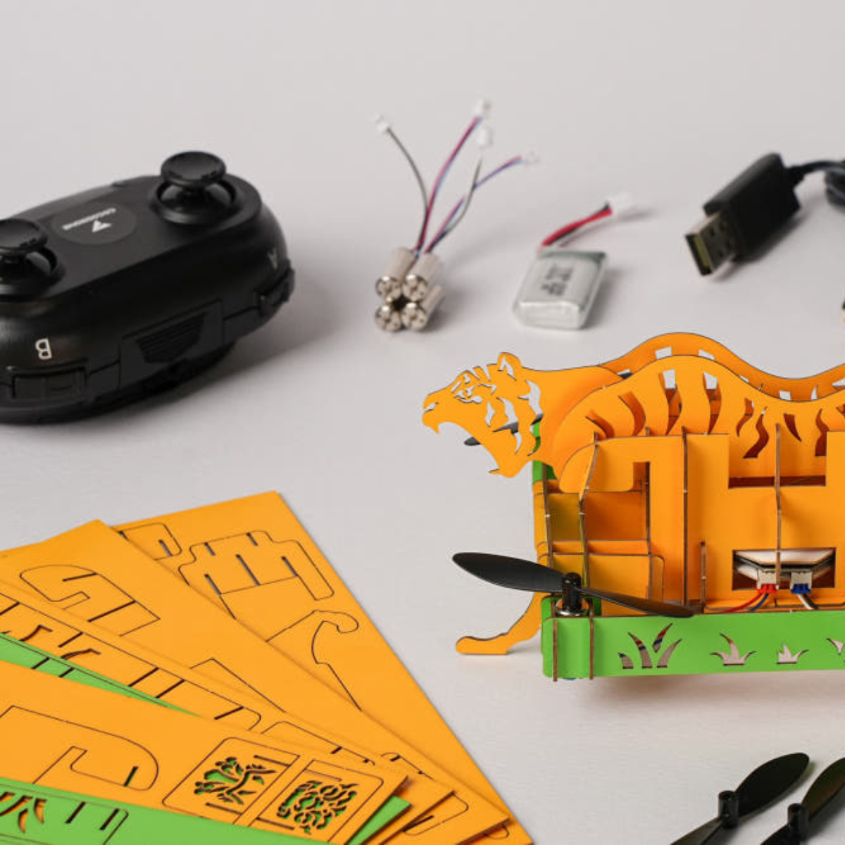 本商品は、紙製ドローンを組み立てて飛ばす体験型キットです。
