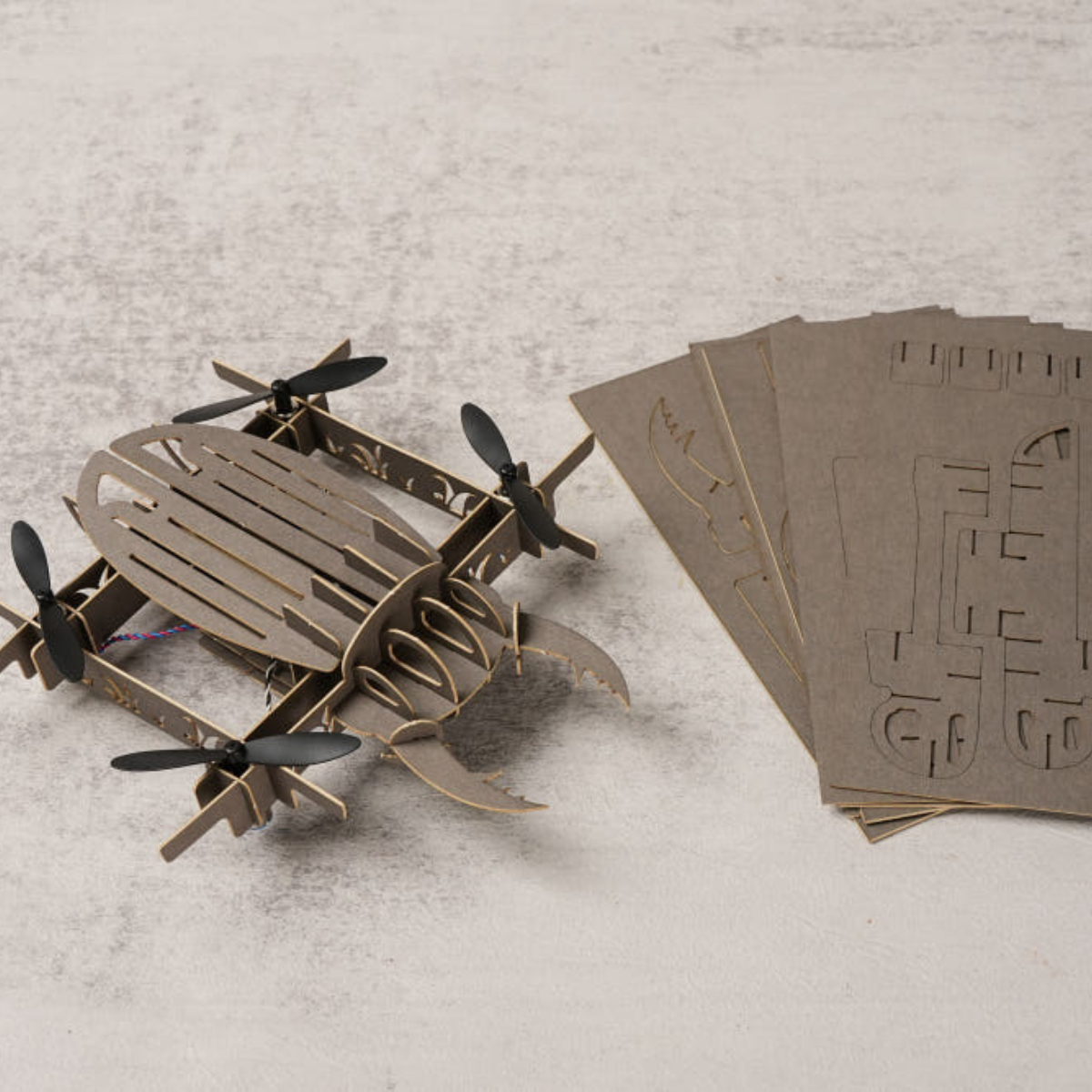 本商品は、紙製ドローンを組み立てて飛ばす体験型キットです。